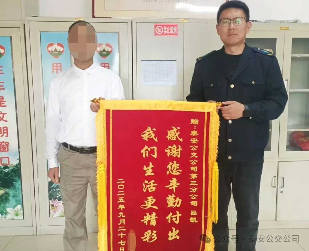 近日,市民裴先生手里緊緊攥著一面錦旗,專程趕到泰安市公交公司第三分公司。這面印著“感謝您辛苦付出 我們生活更精彩”的錦旗,是他特意為7路公交駕駛員呂凱準備的——只為感謝兩天前的夜晚,呂凱師傅在站點多等的短短幾秒,讓自己順利坐上了公交車。