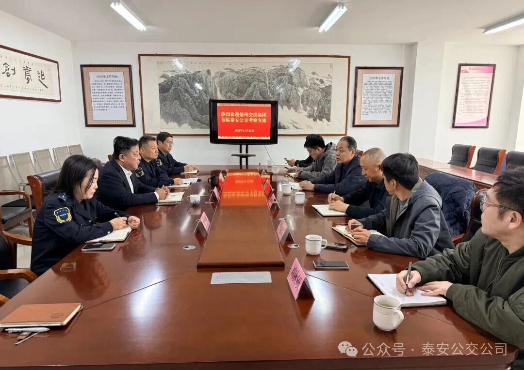 11月25日,德州市交投集團黨委副書記、總經(jīng)理劉俊勇,德州市交投公交集團黨委副書記、總經(jīng)理孫培功帶隊來泰安公交考察交流。泰安公交黨委書記、董事長、總經(jīng)理徐躍,黨委委員、董事、副經(jīng)理徐方華及相關(guān)部門負(fù)責(zé)人參加座談交流。